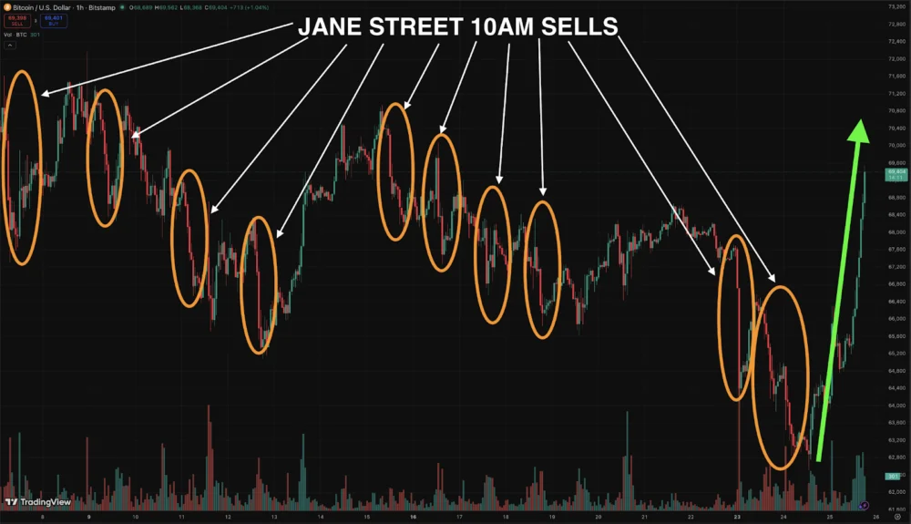 The controversy was ignited by several market observers, including crypto influencer Justin Bechler. Bechler posited that Jane Street’s significant holdings in BlackRock’s iShares Bitcoin Trust exchange-traded fund (ETF), known as IBIT, could potentially mask a net short Bitcoin position through hedging strategies that are not transparent in public filings. Bechler argued that Jane Street was allegedly engaging in coordinated algorithmic selling of Bitcoin at precisely 10:00 am Eastern Time each day, a maneuver intended to manipulate the Bitcoin (BTC) price downwards, thereby enabling the firm to acquire ETF shares at a discounted rate.